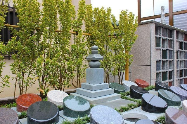 散骨埋葬型墓地「なごみ」は観音様の下にある納骨棺に直接ご遺骨を散骨合祀埋葬するお墓です。区画には専用墓誌があり、生きた証として氏名や戒名を彫刻できる黒御影製の銘板石を設置してご供養することができます。お墓の後継者がいない方でも安心です。